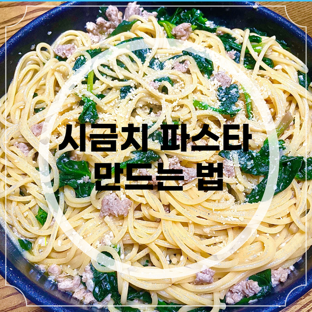 재료 : 스파게티면, 다진 돼지고기, 시금치, 굴소스, 참치액, 소금