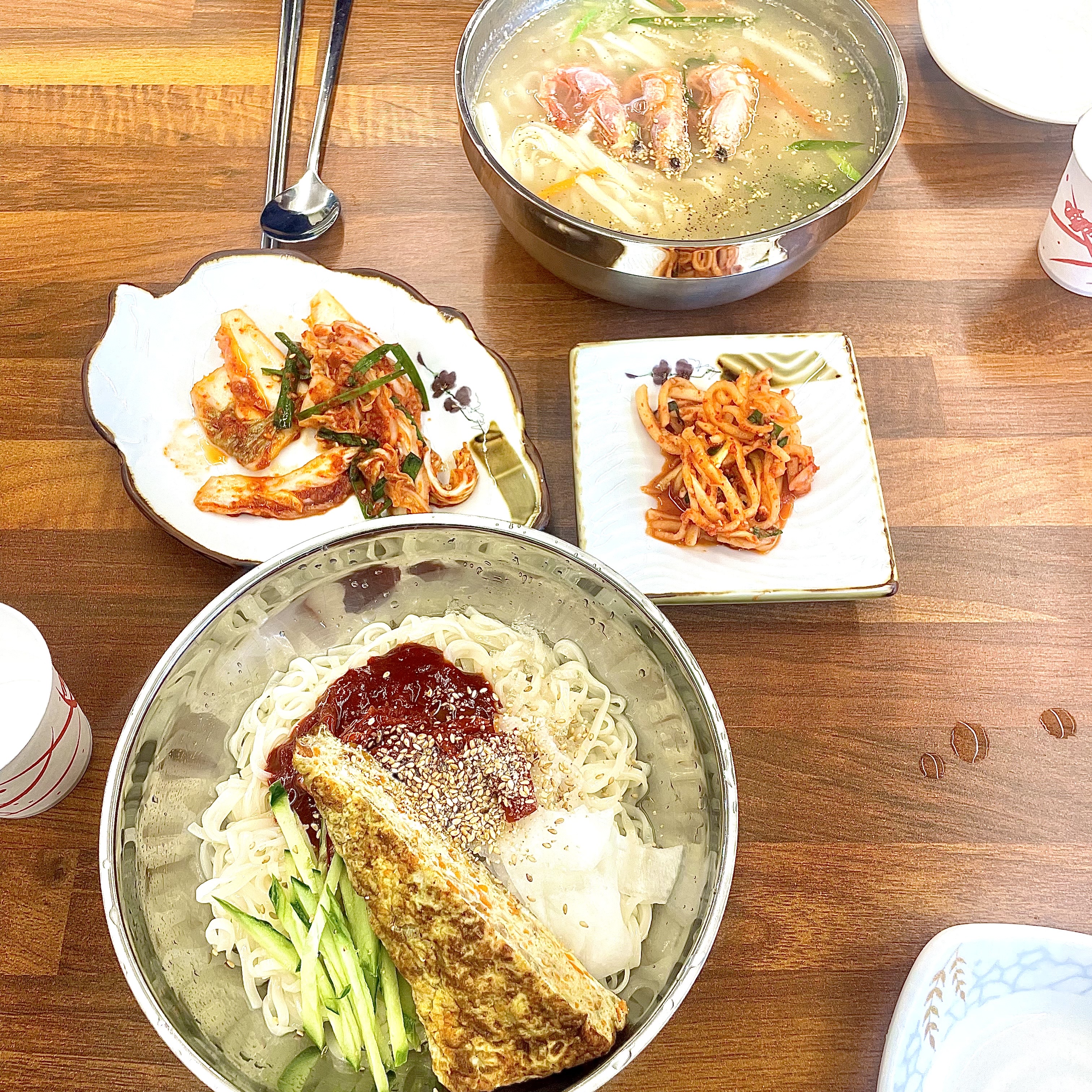 비빔 칼국수 안에 명태회무침(?)도 들어가있었어요!