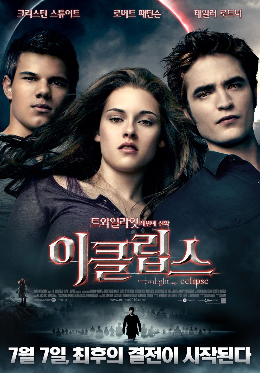 영화<이클립스>는 트와일라잇 시리즈 중 3번째 작품이다. 트와일라잇 시리즈는 스테파니 메이어 동명의 소설을 영화화 한 작품이며, 뱀파이어들을 소재로 한 스토리이다.